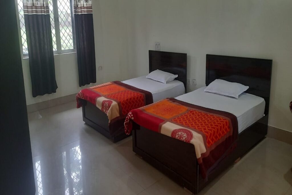 – Ground floor, TV, veranda, geyser available, twin beds, large rooms, tea kettle